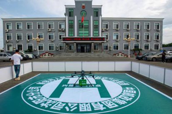 7月24日上午,新民市興隆堡鎮(zhèn)政府廣場上,“航產(chǎn)二號”無人機搭載著報紙、信件和小型包裹騰空而起。