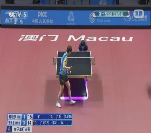 11月16日,十五運會乒乓球項目在澳門銀河綜藝館展開女單決賽爭奪。