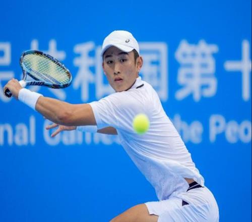 在廣東橫琴國際網(wǎng)球中心舉行的第十五屆全國運動會網(wǎng)球項目男子單打四分之一決賽中,北京隊選手商竣程2比1戰(zhàn)勝浙江隊選手布云朝克特,晉級半決賽。 新華社記者 顏麟蘊 攝