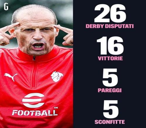 據(jù)米蘭體育報(bào)數(shù)據(jù)統(tǒng)計(jì),米蘭主帥阿萊格里此前共26次帶隊(duì)出戰(zhàn)米蘭德比(米蘭)以及都靈德比(尤文),戰(zhàn)績(jī)?yōu)?6勝5平5負(fù)。