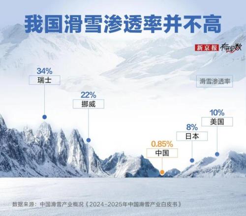 2024雪季數(shù)據(jù)顯示,目前國內(nèi)滑雪市場尚未形成穩(wěn)定的滑雪消費群體,滲透率僅0.85%,而美國、日本滑雪人口滲透率都在10%左右,挪威瑞士更是超過20%。在這些國家,許多人從小就學習滑雪,并將其視為生活方式的一部分,這也意味著,滑雪人群的年齡層會更豐富。