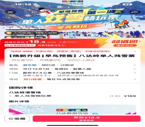 以滑雪熱門地河北張家口為例,近幾年當?shù)鼗﹫鰯?shù)量大幅擴容,競爭愈發(fā)激烈,多家雪場紛紛下調(diào)價格,百元內(nèi)就能拿下門票,和此前兩三百元的定價形成鮮明對比。一些其他雪場甚至在團購平臺上推出19.9 元、29.9元的超低價雪票,堪稱“白菜價”體驗。