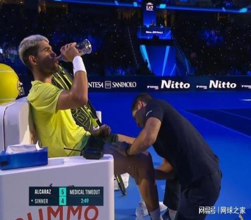 這場比賽一開始,雙方就迅速進入狀態(tài),打得激烈膠著、精彩紛呈。第一盤前九局,雙方各自保發(fā)成功,甚至都沒給對方送出過一個破發(fā)點。不料率先發(fā)球、以5:4領先的阿爾卡拉斯,突然在局間休息時申請了醫(yī)療暫停,由進場的賽事防護員對其右大腿進行了按摩。